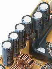许多品牌主板在CPU槽附近都使用了3300微法左右的多个大容量电解电容器附加贴片电容的设计,以充分保证CPU工作时电压和电流的稳定性。